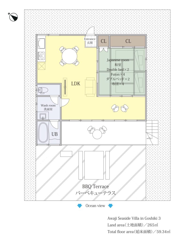 最大6名宿泊。淡路島の海を眺めながらお庭でBBQ!無料Wi-Fiも完備。ペット同伴可!ガーデンパーティもお勧めです。