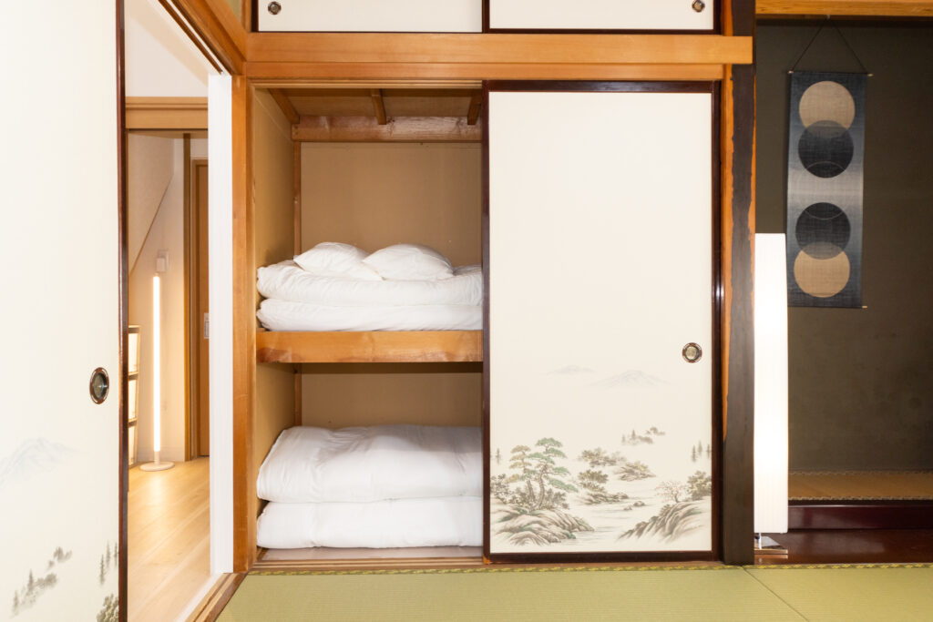 | ベッドルーム | ダブルベッド、シングルベッド、ソファベッド、和式布団、毛布 |